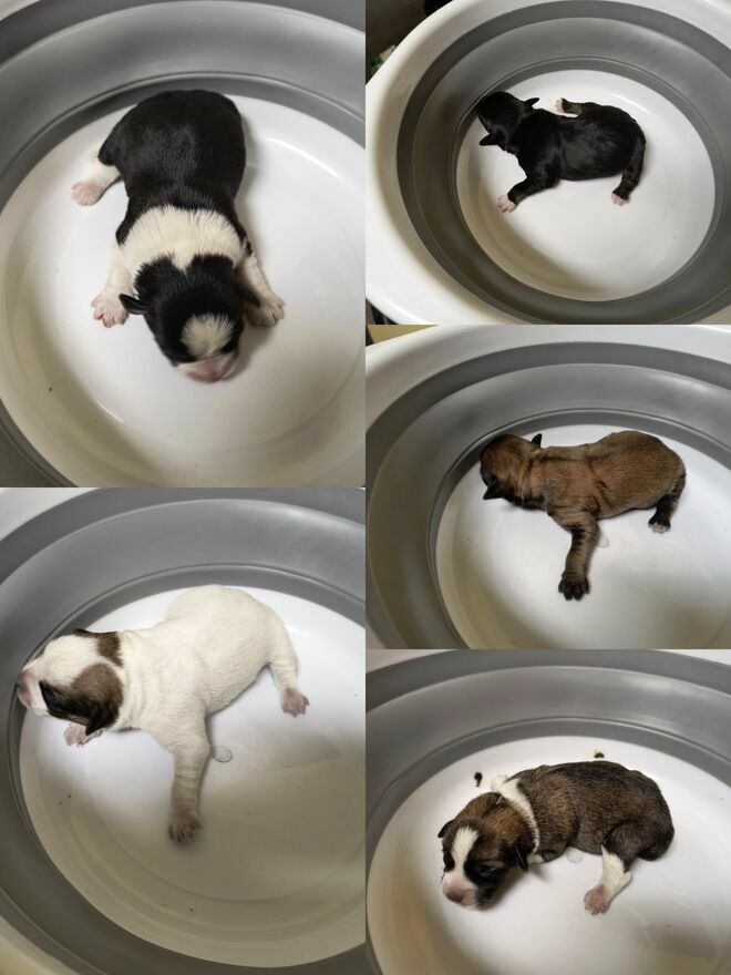 Oddam szczeniaki - kundelki. Dorosłe osiągną max 50 cm.Do odbioru najwcześniej w połowie grudnia. Dwa jednobarwne to pieski, 3 pozostałe to suczki.